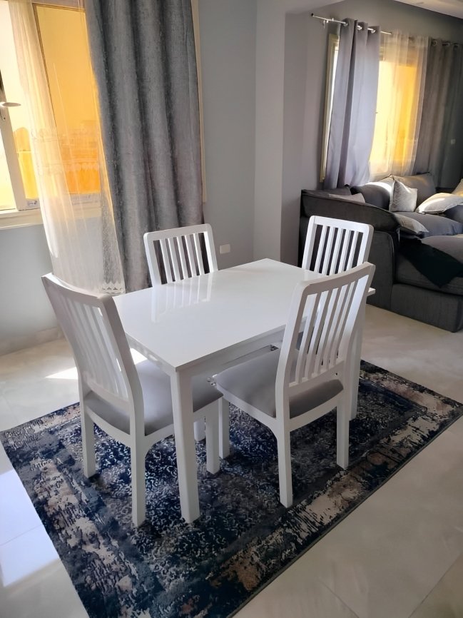- دهان “دوكو فرن” بلمسة إبداعية : اللون الأبيض الناصع اللي بيميز سفرة مودرن 4 كراسي من رومكي مش مجرد دهان عادي، ده دهان دوكو فرن عالي الجودة. الميزة في الدهان ده إنه بيدي مظهر “Shiny” وفخم جداً، والأهم إنه بيحافظ على ثبات اللون ورونقه مهما عدى عليه الزمن، عشان تفضل سفرتك دايماً “منورة” كأنها لسه واصلة النهاردة من المصنع لبيتك.